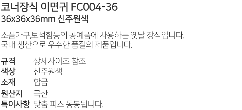 ÄÚ³ÊÀå½Ä À̸é±Í FC004-36 36x36x36mm ½ÅÁÖ¿ø»ö